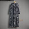 Gamis Aline loose dari bahan sifon ceruty motif floral warna dasar putih tulang, motif mix gradasi hijau-biru.